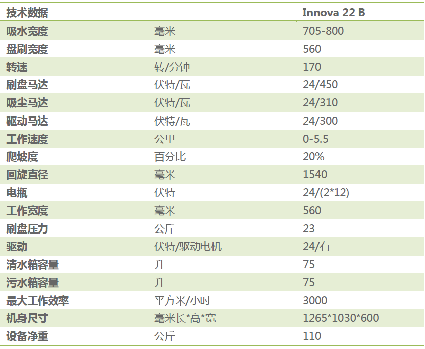 意大利COMAC駕駛式洗地機(jī)Innova22B產(chǎn)品特點(diǎn):1、配備高性能出口型免維護(hù)電瓶,使用壽命更久、動(dòng)力更強(qiáng),可有效延長(zhǎng)連續(xù)工作時(shí)間。2、節(jié)省清潔所用時(shí)間,完成1000㎡的地面清洗任務(wù)僅需20分鐘。3、清潔效率是傳統(tǒng)人力清洗的幾十倍,并且清潔效果更出色,噪音低,一臺(tái)洗地機(jī)能節(jié)省10幾名工人的開支,有效降低了清潔成本問題,管理維護(hù)成本極低,省力、更省錢!4、操作面板簡(jiǎn)單、易懂,鑫金邦免費(fèi)提供上門培訓(xùn)服務(wù),“保潔大媽也能操作自如”。5、適用環(huán)境:小區(qū)物業(yè)、工廠車間、市政單位、商場(chǎng)、車站機(jī)場(chǎng)、廣場(chǎng)、公園、學(xué)校、醫(yī)院、倉庫、停車場(chǎng)等地。