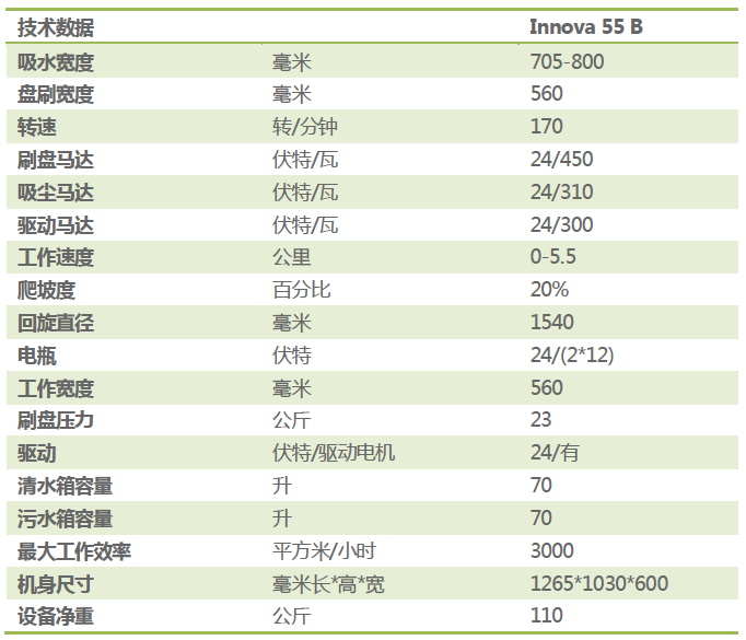 意大利COMAC高美(科邁克)駕駛式洗地機(jī)Innova55產(chǎn)品特點(diǎn):1、配備高性能出口型免維護(hù)電瓶,使用壽命更久、動(dòng)力更強(qiáng),區(qū)別于市面上其他電動(dòng)掃地機(jī),可有效延長(zhǎng)連續(xù)工作時(shí)間。2、有效縮短清潔所用時(shí)間,完成1000㎡的地面清洗任務(wù)僅需20分鐘。3、清洗效率是傳統(tǒng)人力清潔的幾十倍,并且清潔效果更出色,一臺(tái)洗地機(jī)能節(jié)省10幾名工人的開(kāi)支,有效降低了清潔成本問(wèn)題,省力、更省錢!4、操作面板簡(jiǎn)單、易懂,鑫金邦提供免費(fèi)上門培訓(xùn)服務(wù),“保潔大媽也能操作自如”。5、適用環(huán)境:小區(qū)物業(yè)、工廠車間、市政單位、商場(chǎng)、車站機(jī)場(chǎng)、廣場(chǎng)、公園、學(xué)校、醫(yī)院、倉(cāng)庫(kù)、停車場(chǎng)等地。